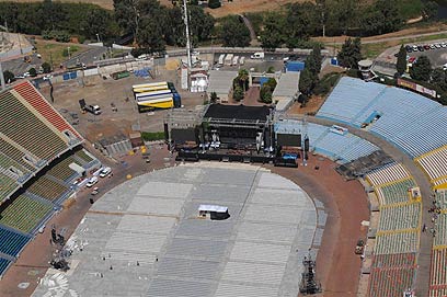 יממה לפני ההופעה המדוברת של לאונרד כהן, וכך נראה אתר המופע. כל הכסאות במקום, המכולות ממתינות והבמה מוכנה