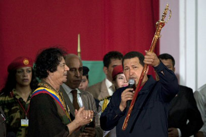 הקשרים החמים בין ונצואלה לאיראן הם כבר דבר ידוע, ובסוף השבוע נראה כי הציר האנטי-מערבי תאוצה. נשיא ונצואלה, הוגו צ'אבס, ומנהיגה של לוב, מועמר קדאפי, חתמו הלילה (יום ג') על הצהרה המגנה את "ניסיונות מעצמות המערב להשוות בין מאבק נגד כיבוש לבין טרור".