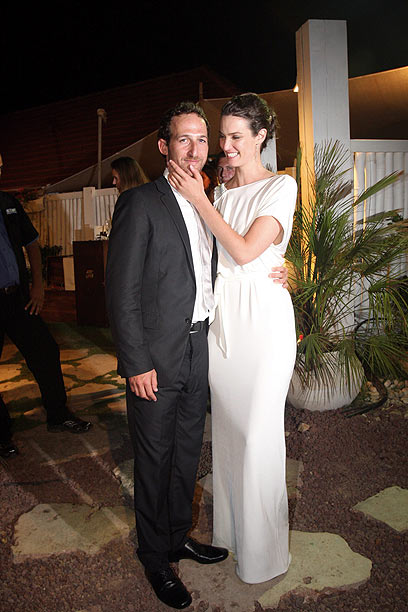 עם האשה שאיתו, יעל גולדמן, ביום חתונתם (צילום: רועי חביב)
