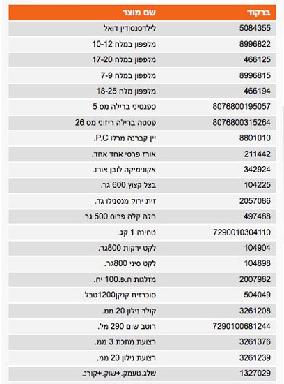 אז החלטתי להציץ ב-3000 המוצרים שהורידו להם את המחיר. לחיצה על האייקון מעבירה לדף המציג לשוניות עם קבוצות של מוצרים. הלשוניות ענקיות והרשימות עצמן מוסתרות במבט ראשון, וחייבים לגלול כדי לראות את המוצרים. הרשימה עצמה מציגה שם של מוצר וברקוד, כאשר לא הבנתי מה חשיבות הצגת הברקוד ובמה היא עוזרת לי.
