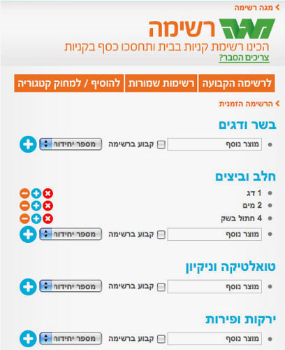 אבל ציפיות לחוד ושירות מתקדם לחוד. אין מוצרים, אין תמונות, אין בחירה. סתם רשימה שאפשר להכין גם ב-word ולשמור. התחלתי להוסיף מוצרים ואז גיליתי שהם הוספו רק לרשימה הזמנית. רציתי להוסיף אותם לרשימה הקבועה, אבל - אי אפשר. ניתן לערוך את הכמות אבל לא להעביר מוצר לרשימה קבועה. עוד אייקון קטן וזה היה הרבה יותר יעיל. לסיכום השירות, הרעיון הקריאטיבי מאחוריו מעולה, חווייתי ויכול היה להיות שימושי במיוחד. יתכן שמשיקולי תקציב או זמן הוא הפך לפספוס.
