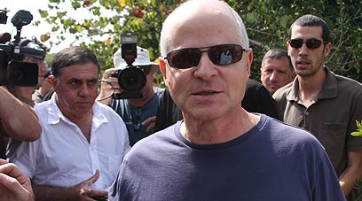 נועם שליט מול הכתבים והצלמים בחצר ביתו (צילום: אבישג שאר-ישוב)