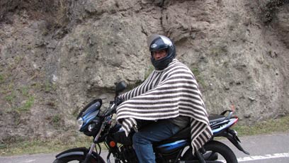 הבתים האחרונים של בוגוטה נעלמו כנקודות במראות האופנוע, ולפנים הכביש החל להסתלסל בין שלוחות הרים ומורדות שהסתירו ערוצי נהרות בעומק חמוקיהם. בעודי מהרהר בנחת, חלף על פני בצווחת מנוע אופנוע ספורט, כמו אומר: "בוא נראה אותך משיג אותי, שוויצר!". לאופנוענים שכאלה אני מגיב תמיד בחיוך ביני לביני.