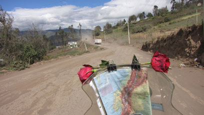 בתחילה הכביש התנהג יפה, אך איפשהו אחרי העיר אמבטו (Ambato) והפניה לכיוון באניוס, מצאנו עצמנו בדרך עפר שנפרצה בהר באופן זמני, כי הכביש הראשי נחרש ונסלל מחדש כרגע. לבסוף באנו בשערי באניוס ולדלתו של "הוסטל טרנסילבניה" הישראלי, ששמענו עליו טובות ורבות.