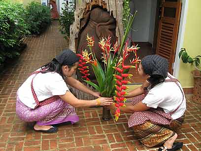 מעניין לראות, אפילו בחצר בית הכי עני ומוזנח, מקדשון קטן מוזהב, מקושט במחרוזות פרחים. בתי העשירים מפוארים, שלהם יש לפעמים סירה פרטית, אופנוע וגם מכונית. העניים צריכים להסתפק באופניים או סירת-מונית כדי להתנייד.