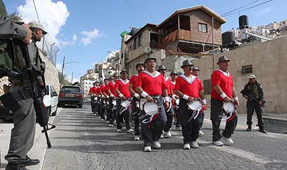 צועדים תחת אבטחה כבדה, הבוקר (צילום: גיל יוחנן)