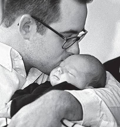 התינוק שנחטף על ידי מישל ביקה עם אביו. צילום: אי.פי