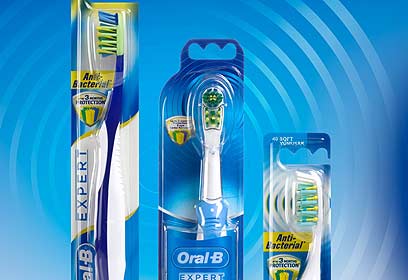 אורל בי אקספרט אנטי בקטריאלמברשת שיניים גברית למראה. הידית ניחנת בצבעי טורקיז ירוק בקבוק עם נצנצים ומיני פסים ארגונומיים למראה אבל חידתיים לשימוש. במרכזה נחים להם צמד כפתורים שעליהם הסימונים: פלוס ומינוס. עוד נחזור לשני אלה.