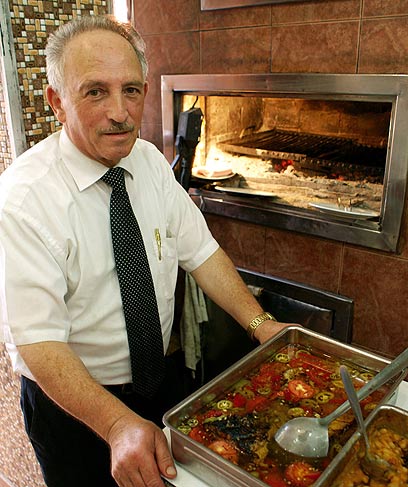 ליאון עצמו כבר לא בסביבה, אבל יוז'י - החצי השני מהשלט הגדול שבכניסה - עדיין כאן. יותר מ־40 שנה הוא עומד עם חולצה מכופתרת ועניבה מגוהצת מול הגריל שבקיר, חמוש במלקחיים גדולים ובחיוך קטן מתחת לשפם. מכירים את מבט ה"אני כבר ראיתי הכל בחיים"? אז ליוז'י יש מבט של אחד שראה הכל פעמיים, ואז שוב ברוורס, ואיכשהו ממשיך לשמור על מצב רוח היתולי. סועדים מבוגרים במיוחד הוא מקפיד לברך ב"מה שלומך ילד?", ואפילו מוסיף צביטה בלחיים; מעת לעת הוא עוזב את העמדה הקבועה שלו מול הפחמים ומתחיל להסתובב בין השולחנות תוך פיזור משפטים כמו "תאכלו שום, זה במקום אנטיביוטיקה" או סיפורים על הימים שבהם נהג אורי זוהר לפקוד את המקום.