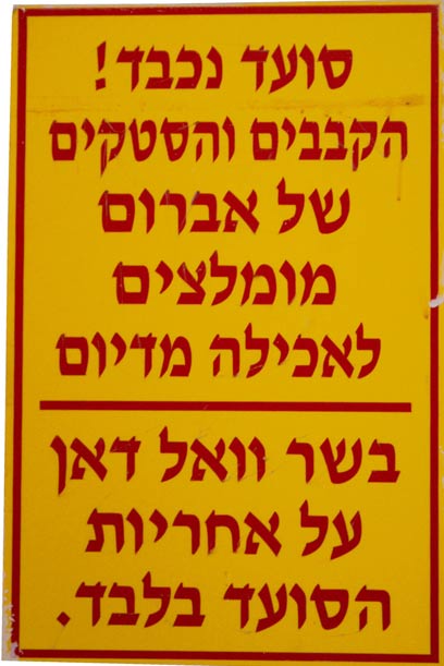 אברום עצמו בכלל הגדיל לעשות, והזמין אותנו לבחון את הבשר לפני שהשליך אותו על הגריל. אין מה לדבר, האיש משקיע בחומרי הגלם שלו ("הסטייקים והקבבים מומלצים לאכילה מדיום", מודיעים שלטים מאירי עיניים. "בשר וול דאן על אחריות הסועד בלבד"). לנתח החזיר היה אשכרה מרקם משיי, ואילו המוח - ספציאליטה רומני ממדרגה ראשונה - נשלף ללא ספק מגולגולתה של פרה בעלת השכלה אקדמית. שני אלה לא איכזבו גם אחרי שהוגרלו כיאות, מה שלדאבוננו אי אפשר לומר על הקבב: הוא היה די חרוך מבחוץ ולגמרי נא מבפנים. בפעם הראשונה והאחרונה בסיור הזה נאלצנו להחזיר מנה למטבח כדי שיבצעו בה וידוא הריגה.