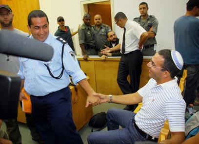 חוזר למרכז העניינים. הררי מחויך בבית המשפט (צילום: דנה קופל)
