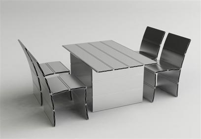 שולחן וכיסאות מתריס מכופף. עבודה של עזרי טרזי