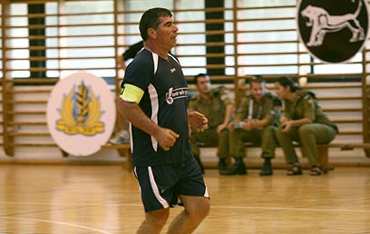 רא"ל גבי אשכנזי ביום הספורט. הפעם כיכב על הפרקט (צילום: אורן אהרוני)