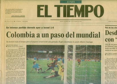 עיתונאי קולומביאני שעמד לצידי והבחין בהשתוממות שלי, הרגיע אותי וטען שמדובר בטקס מקובל בקולומביה לכל נבחרת, שנועד לומר לאורחים: 'אין לכם ברירה אלא להיכנע'.