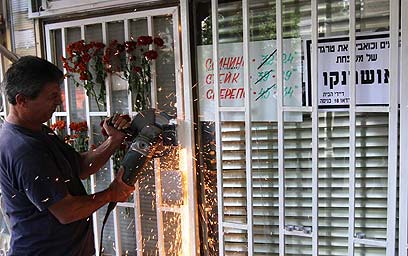 פורצים את דלת המעדניה של לודמילה אושרנקו (צילום: אבי מועלם)