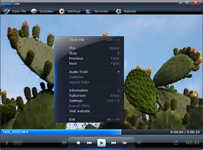 בזמן ניגון קובץ הוידאו, לחיצה על לחצן ימין בעכבר תגלה תפריט קיצורים המאפשר הצגת מידע על הסרט (בסיסי למדי), מעבר למסך מלא או שינוי פסקול האודיו (במקרה בו יש יותר מפסקול אחד לסרט).