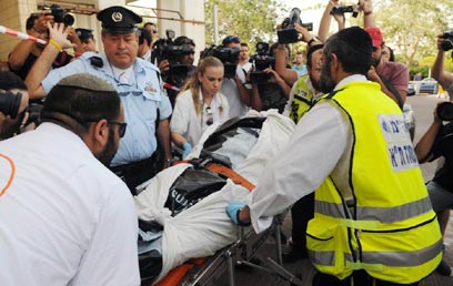 צוות מד"א מפנה את הגופה (צילום: אורן אהורני)
