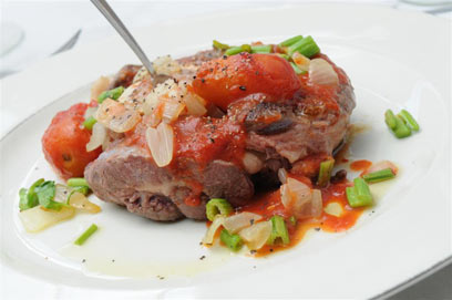 תבשיל קדרה של שוק עגל ביין לבן ועגבניות