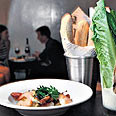 המשכנו בסלט קיסר, שהוגש גם הוא בדרך ייחודית: עלי חסה ארוכים ופריכים שעליהם פוזרו שבבים גדולים של גבינת פרמז'ן ולצידם טוסטונים קטנים – כל זה תחת מעטה של רוטב קליל ומקסים, שהוכן כנראה על בסיס חלמון, פרמז'ן ואנשובי.