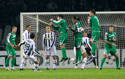 44': עוד כדור חופשי ליובנטינים, הפעם כעשרים מטרים משמאל לשער של דוידוביץ'. דייגו לקח את הבעיטה, שהיתה רחוקה מטר או שניים מהקורה הימנית של חיפה.