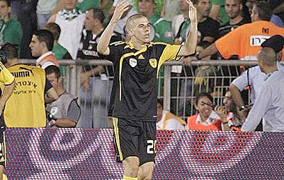 עידן ורד חוגג יתרון מוקדם לבית"ר (צילום: אלי אלגרט) .