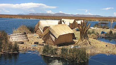 בבוקר ירדנו לנמל ומצאנו ספינת מנוע קטנה שתיקח אותנו לביקור באחד מהאיים הצפים שבאגם. הפלגה של חצי שעה הנחיתה אותנו באי של משפחה המתפרנסת מהצגת מורשת המגורים על איים עשויים משטחים צפים של ענפים יבשים מצמח הטוטורה, העוגנים במרחק כמה קילומטרים מהחוף. המים כאן הם בעומק כ-40 מטרים ולכל משפחה יש אי קטן עליו היא מנהלת את חייה המתנדנדים. בתום שעה, שבנו לפונו ולארוחת דגי שמך באחת הבאסטות.