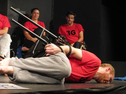 בדקות הראשונות מפזרת להקת השחקנים כמו ב-Reduced Shakespeare comp את תקציר מערכת היחסים ההיסטורית בין היהודים, הגרמנים והפלסטינים. זה מהיר, עצבני, קריקטוריסטי, מקומם ומצחיק. כשהשחקנית הפלסטינית, ראודה, מבקשת לדבר על הנכבה, אומר לה השחקן הישראלי, ישי גולן, שזה אסור. "זה לא חוקי", הוא אומר ומתכוון להצעת החוק של ליברמן. מישהי מתקנת אותו: "מותר לה להגיד נכבה, אבל לא להתעצב מזה".