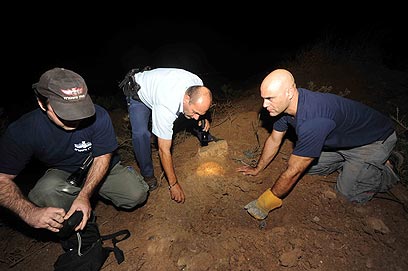 בוחנים את שרידי הרקטה (צילום: אביהו שפירא)
