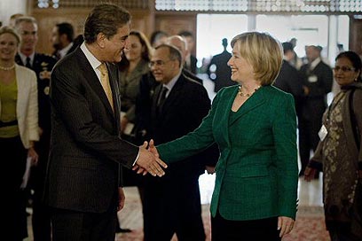 קלינטון בסדרת פגישות עם הגעתה לפקיסטן, הבוקר (צילום: AP)