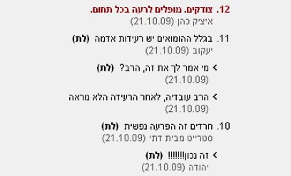 נושא הטוקבקים כבר נידון בעבר ובכל זאת נראה לי שבחודשים האחרונים המצב החריף. אם הטוקבקיסטים הם המראה של הישראלי הממוצע, אז יש לנו סיבה לדאגה. תהיו כנים עם עצמכם וחישבו כמה תגובות אלימות קראתם או כתבתם לאחרונה (מאוד פשוט סתם להעביר אל המקלדת מחשבות מיידיות, בלי לחתום עליהם,