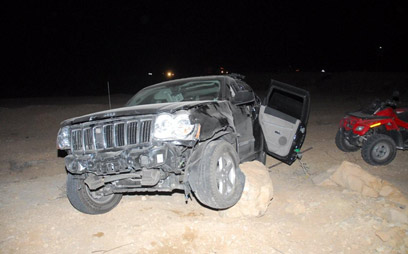 הג'יפ שהתנגש באוטובוס (צילום: הרצל יוסף)