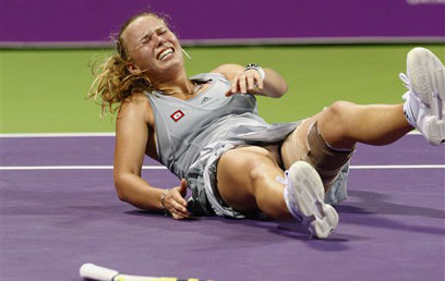 ווזניאקי נאנקת מכאבים, הערב בדוחא (צילום: AP)