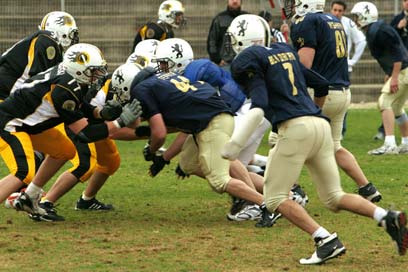 סטורם מבטיח לי שלמרות בתוליותם, החבר'ה של אגייאר הולכים לעשות השנה הרבה צרות - פחות בגלל הקאדר שמורכב לגמרי מישראלים צברים, ויותר בגלל מה שיש להם על הקווים. מתברר שאיכשהו התארגנו בבאר שבע על צוות אימון שמורכב משני חיילי נייבי אמריקאים שמוצבים בישראל. "אתה יודע מה זה אומר?", שואל סטורם ומיד עונה בעצמו: "שיש להם משמעת של חיילי קומנדו, ושהם כמעט אף פעם לא טועים. בפוטבול זה בדרך כלל מספיק בשביל לנצח".