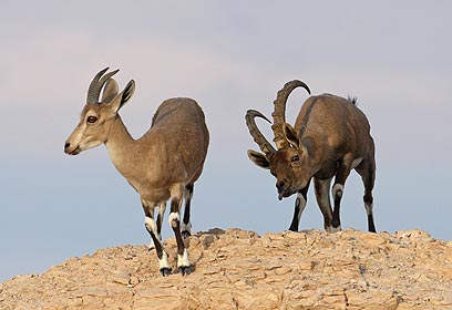 זכר יעל נובי מחזר אחרי נקבה באזור מצדה (צילומים: אמיר בן דב)