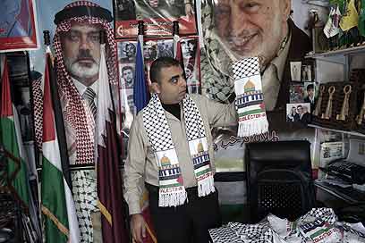 האופנה החדשה בחנויות המזכרות בעזה: צעיפי גולדסטון (צילום: AFP)
