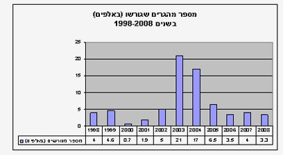 שנת השיא של כל הזמנים עד כה הייתה 2008, שבה ניתנו - תחת שר התמ"ת אלי ישי - 118 אלף אשרות לזרים. אולם השיא הזה כבר נשבר למעשה: נכון לסוף ספטמבר, שלושה חודשים לסיומה של שנת 2009, שבה הכריזה הממשלה על צמצום מספר האשרות,הוענקו כבר 120 אלף אשרות. אמנם שר התמ"ת הוא כעת ממפלגת העבודה, אולם החל משנה זו האחריות על הענקת האשרות כבר אינה מצויה שם, אלא במשרד הפנים - שבראשו עומד השר אלי ישי.