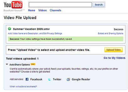 הקליקו על Go to My Movies כדי לצפות בדף המשתמש שלכם עם הסרטון או הסרטונים שהעליתם.