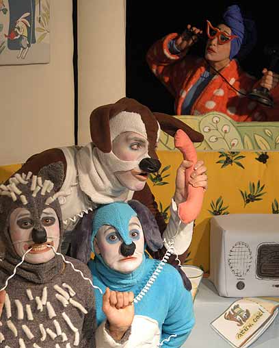 הטקטס בהצגה הוא מינימליסטי, רוב רובו של הסיפור מועבר בשפה תנועתית, ריקוד ופנטומימה. הדמויות ססגוניות, מצחיקות, מוגזמות וכובשות את לב הילדים. בעיקר הדמויות של שלושת הכלבים פורעי החוק שמשתוללים במסיבה כזאת שאפשר לעשות רק כשההורים לא בבית...