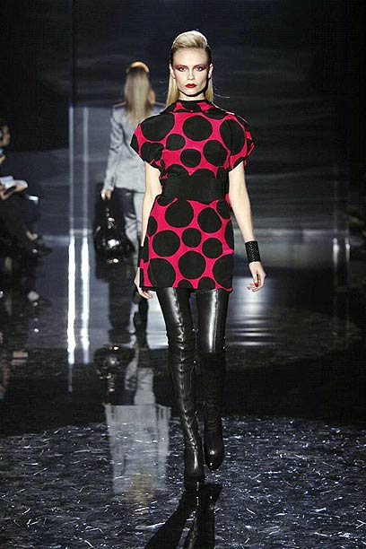 הקולגה הצעירה יותר, היא מקרתני, יצרה מגפיים צמודים מכל טייץ, שמגיעים עד אמצע הירך ומעוטרים בניטים קטנטנים. המרחק בין המכנס למגפיים מעולם לא היה קטן יותר, והחיקויים פרחו מכל עבר. עם הגרסה של מקרתני, אגב, אי אפשר ללבוש אלא שמלה או ז'קט. מכנסיים אינם באים בחשבון, פשוט כי המגפיים חונטים את הרגליים. במובן הזה, ומשום שרוב השמלות שצוותו למגפיים, היו (איך לומר זאת?) קצרות למדי, הרי שמקרתני ודומיה נשענו בעיקר על מראה האופנוענית ונערת הרוק.