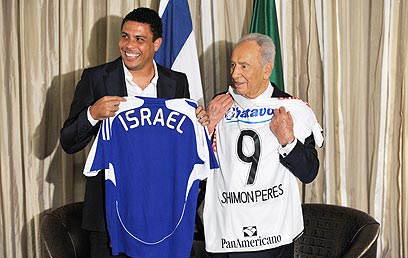 נשיא המדינה והכוכב הברזילאי נפגשו והחליפו חולצות. רונאלדו: "מעכשיו אפשר לקרוא לך משוגע, כי כך מכנים את האוהדים". פרס ענה: "ככל שתמהר לבקר בישראל - כך אולי יקדים השלום"