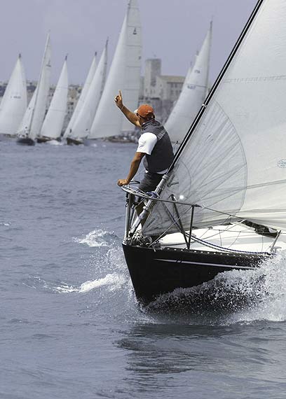 כעבור שלוש דקות התחילו אנשי הצוותים ביאכטות לפשוט מדים ולקפוץ למים. הסקיפר שלנו אמר שהמירוץ היומי בוטל כנראה, והצביע על הדגלים שלא התנופפו על תורני הסירות שמסביב. ככה זה: כשאתה בא לרכב על גדול איתני הטבע, אתה צריך להבין שאתה ולוח הזמנים שלך די זניחים.