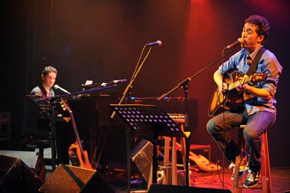 באולם הזעיר נרשמה תפוסה מלאה - כל הכרטיסים נמכרו כבר לפני כשבועיים - כשהשניים עלו לבמה להעניק מופע מוזיקלי נטו, הכולל רק אותם, בתוספת צ'לנית שסייעה במספר קטעים. הם הירבו להחליף כלי נגינה, ביניהם בס, גיטרה, פסנתר ואפילו קסילופון. כצפוי, מדובר בשירים מצחיקים, שכתבו ביחד ובעיקר שירים שכתב כל אחד בעצמו.