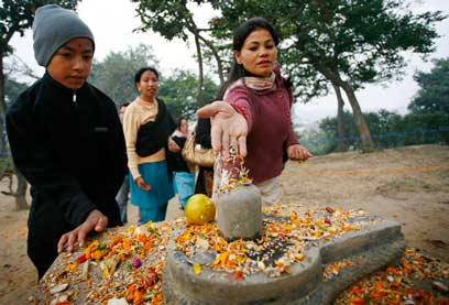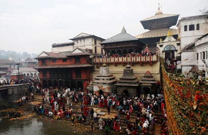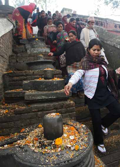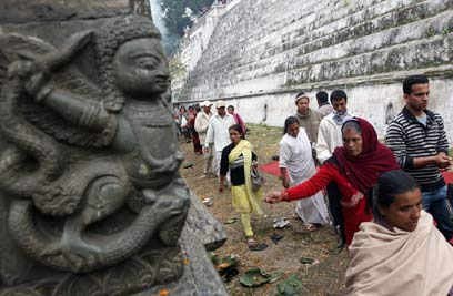 מאמינים בני דת ההינדו בקטמנדו, בירת נפאל, מעלים קורבן זרעים של צמחים שונים בפסטיבל בלצ'טורדאשי (Balachaturdashi) שמתקיים היום (א') סביב מקדש פשופטינט (Pashupatinath) בעיר