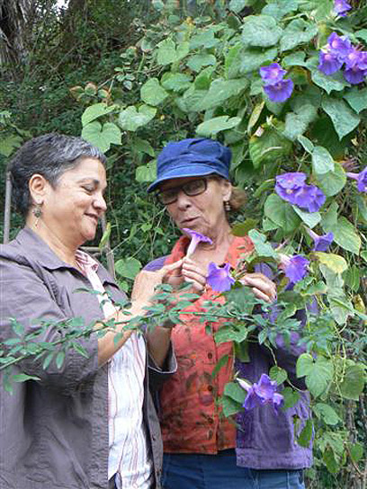 ד"ר גרוס (משמאל) עם מבקרת בגן הבוטני. הגן זכה בהכרה ממשלתית
