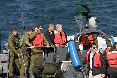 ראש הממשלה מקבל תדרוך בים (צילום: אלכס רוזקובסקי)