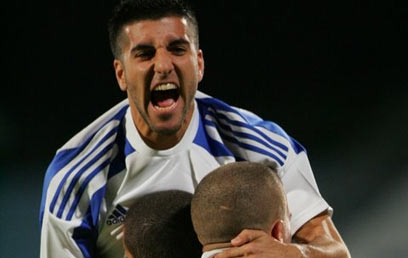 ריקן חוגג עם החברים. ישראל טובה יותר מבולגריה (צילום: אלי אלגרט)