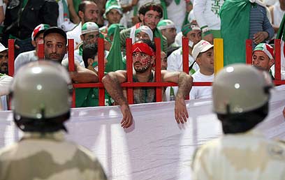 אוהדי אלג'יריה מול שוטרים סודנים (צילום: AFP)