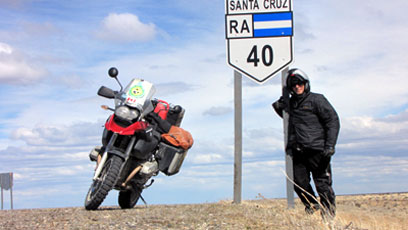 סופת שלג תוצרת צ'ילה דחפה אותי בכוח חזרה מזרחה, ובתוך שעה וחצי מצאתי עצמי בתחנת דלק בצומת לה אספרנסה, שהוא מעבר הכרחי לנוסעים דרומה מכאן. הטבעתי את יגוני בכוס סודה וחטיף שוקולד, כשלתחנה הגיעו ברעש מנועים מוכר שני אופנועים מצוחצחים ומלאי מדבקות של חצי מדינות אמריקה.