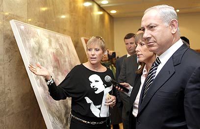 נתניהו בתערוכה על אלימות נגד נשים, הבוקר (צילום: אריאל ירוזולימסקי)