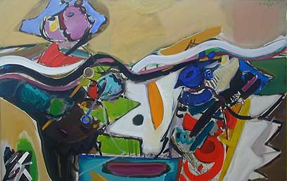 כנראה שבסתר חשוב היה לו להשאיר עוגן במציאות ניתנת לזיהוי. הוא צייר את צלילי המוזיקה בהפשטה, אבל רצה גם שתהיה – ולו בכמה משיכות מכחול שאין לטעות בהן – עדות לפסנתרנית, לחלילן או לנגן הלאוטה.